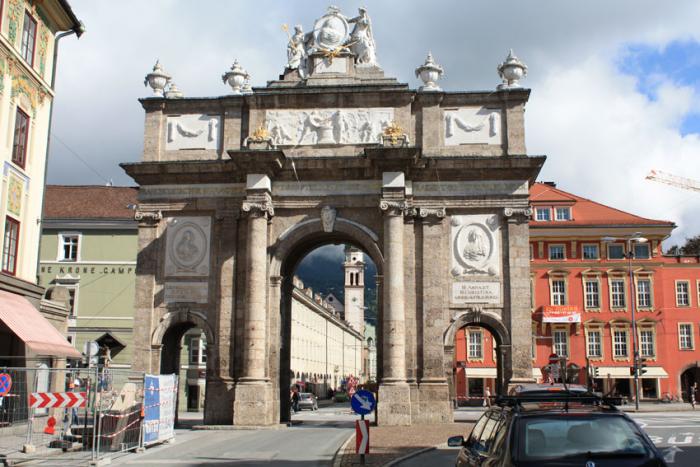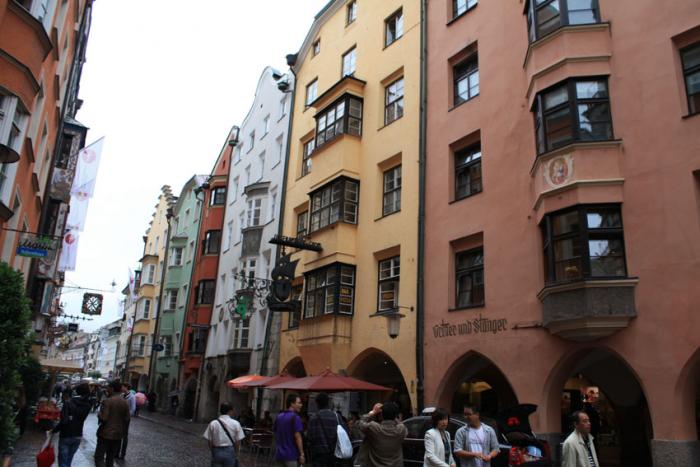 Быстро разместившись в отеле и спросив дорогу в центр города, пошли гулять. Инсбрук расположен на западе Австрии, это столица австрийской земли Тироль. Город пересекает горная с быстрым течением река Инн. В Инсбруке мы провели вечер и весь следующий день. Погода менялась по нескольку раз в день, как впрочем, очень часто бывает в горах. Однако отдохнули отлично, нагулялись, осмотрели старый город, т.е. историческую его часть, а так же обычные жилые кварталы. Город нам очень понравился своими памятниками, архитектурой, дворцами, ну и, конечно, доброжелательностью самих австрийцев.