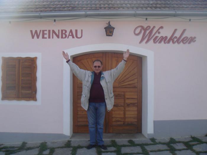 Километров через 20 после г. Кремс мы свернули с дороги, чтобы посетить винный дом г-на Винклера, владеющего огромными виноградниками. Все свое вино г-н Винклер продает только постоянным частным покупателям, в магазинах оно не продается. Излишки винограда сдаются в кооператив, который делает вино под своей маркой. Заехав за г-ном Винклером домой, мы уже вместе с ним поехали на его производство и в винные подвалы. Любезный г-н Винклер ничего от нас не скрывал и показал все свое хозяйство. К сожалению, виноград еще не созрел и производство не работало. В этих краях существует традиция – при рождении ребенка закрывается бочка вина, которая открывается только в день свадьбы этого ребенка. После осмотра винных подвалов, производства, лаборатории и зала для гостей, который оформлен как музей старины, нам было предложено заняться дегустацией вина. В дегустации приняли участие сам г-н Винклер и штурман. Командир от этого действа вынужден был отказаться, т.к. впереди была неблизкая дорога. Было продегустировано 4 бутылки красного вина и 3 белого. В результате было куплено 8 бутылок вина, часть в подарок, а часть с собой в Москву. После этого г-н Винклер повез нас осматривать его виноградники, на краю которых он построил большую и высокую вышку. С этой вышки покупатели вина осматривают его виноградники и тут же, если хорошая погода, дегустируют вино.