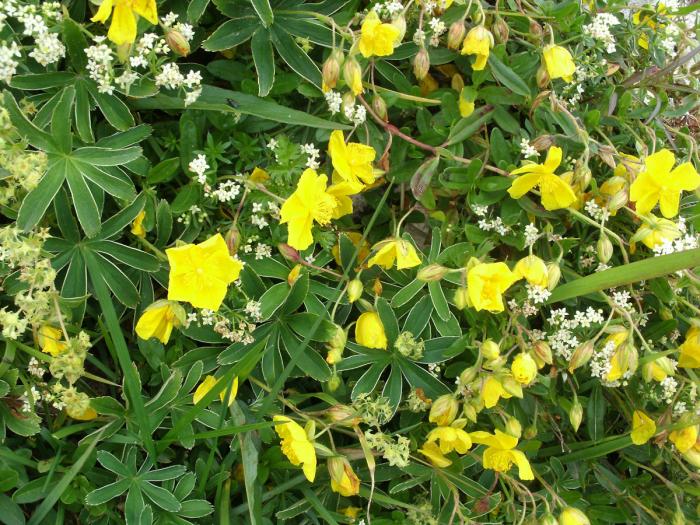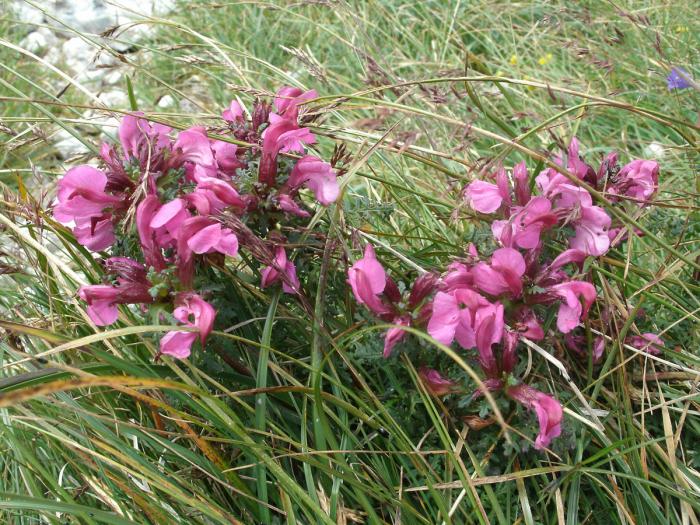 Попадаются островки ярких альпийских цветов.