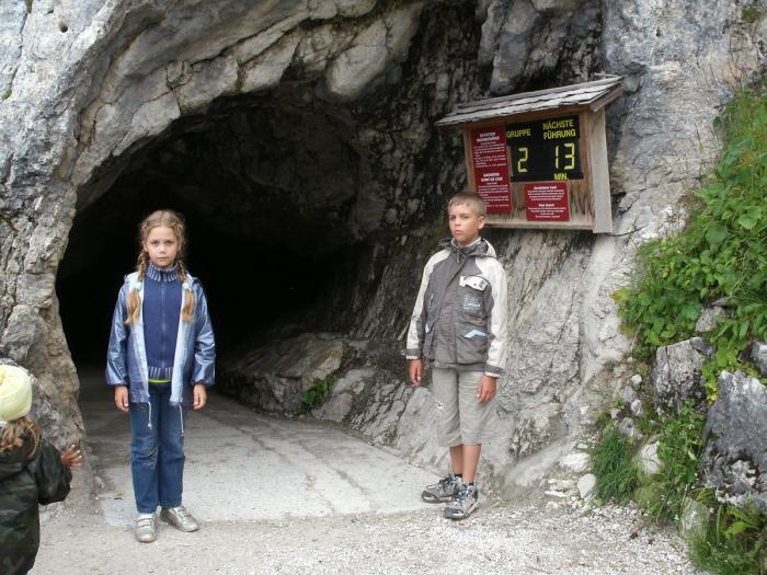 Аня до этого ещё не была в пещерах и иногда, когда ради какого-нибудь шоу или спецэффекта выключали свет, начинала плакать. Мы её успокаивали, но всё равно, видимо, ещё рано ей было. Может и хорошо, что в соляную шахту не пустили её. Мы бы там справились, но там тоже были такие «тёмные» помещения. Девушка-экскурсовод повторяла каждый рассказ по-английски, также у нас была брошюрка на русском языке с аналогичным рассказом, что было полезно старшим детям.