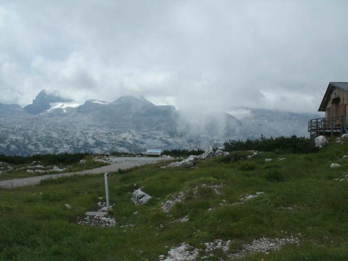 Когда планировали поездку, то нам (а особенно мне) очень хотелось посмотреть Альпы. Там в каждом уголке можно «зависнуть» по месяцу и более — в любой сезон и на любой вкус. Нам приглянулся вот такой уголок — Не знаю как это перевести. Словарь даёт Dach=крыша Stein=камень, а Salzkammergut нашёлся в гугле как «кладовая соли». Поскольку нам на остановку в Австрии отводилось 2 дня, то даже в этом районе мы увидели лишь очень малую часть всех красот.