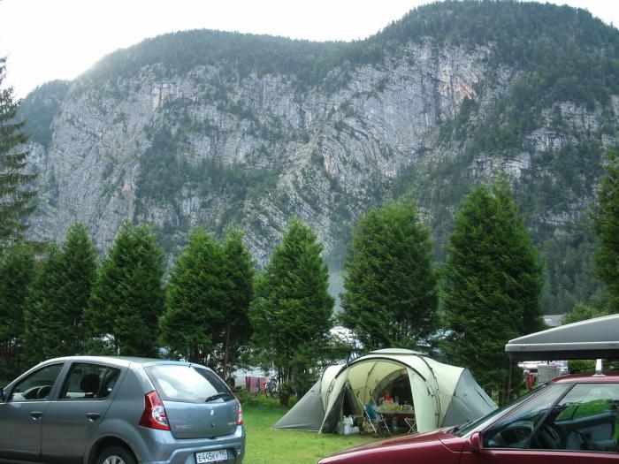 У стойки женщина средних лет, очень приветливая, отлично говорит по-английски и быстро находит нам подходящее место. Кемпинг, как и на озере Гарда маленький (впрочем, как и всё в Хальштатте). Очень уютная, можно сказать домашняя атмосфера. Почему они неохотно отвечали на письма и не отвечали на звонки — не знаю. Может номер сменился или просто всё время совпадало так, что не могли подойти к телефону, мы уж не стали уточнять.