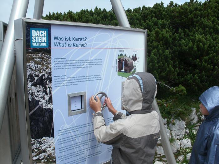Наш семейный билет включал в себя все три участка подъёмника, поэтому мы прокатились и на третьем. Он ведёт дальше к горам и немного вниз, до 1750 метров. Непосредственно на самой третьей станции особых видов нет, зато оттуда ведёт множество пеших маршрутов к леднику и другим достопримечательностям. Но на каждую такую прогулку уйдёт от полудня до дня да и нравится это из всех нас только мне. Поэтому, мы возвращаемся на Криппенштайн, а затем спускаемся на среднюю станцию, откуда можно пройти к пещерам ледяной и мамонтовой.
