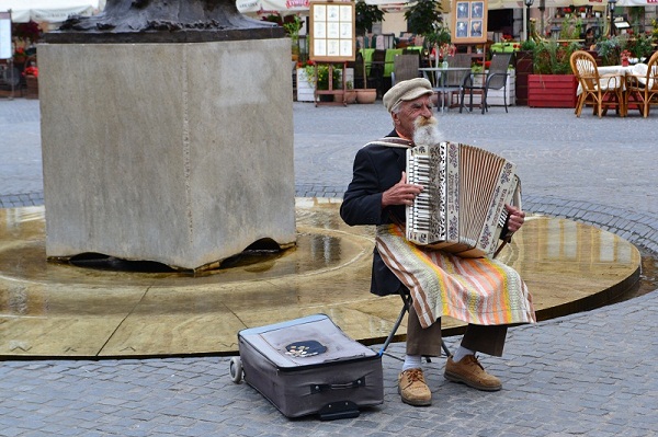 Забавный дедушка на площади