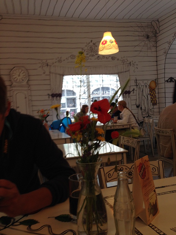 Нашли кафе в старом граде, где решено было что-нибудь перекусить. Муж взял себе борщ, сам он у меня су-шеф, поэтому в кухне понимает) Борщ похвалил, сказал в России такой не готовят! Там не было ничего кроме самого бульона и клецек, ни капусты, ни мяса там не плавало :) мне достался польский гуляш :)
