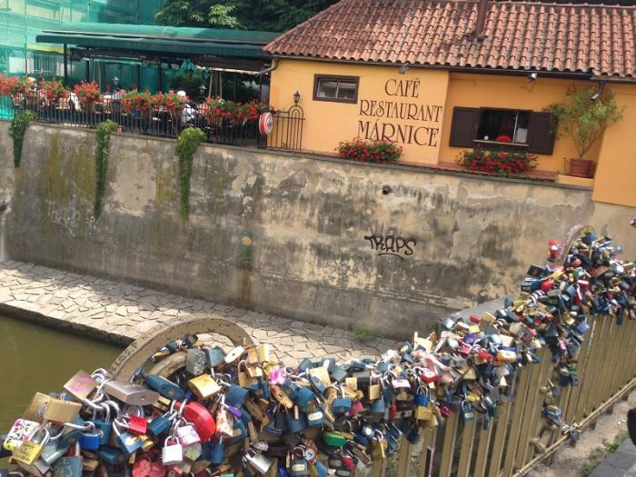На мосту было много музыкантов, кто на чем играл, кто на саксофонах, кто на барабанах, но больше всего понравился этот чех, который музыку делал с помощью бокалов, воды и монеток!