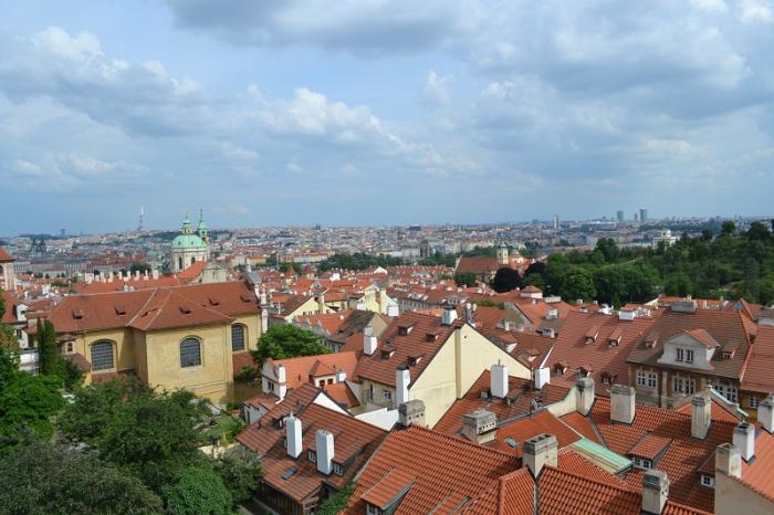 Дорога пошла в гору и мы дошли до смотровой площадки у стен Пражского града. Вид открылся прекрасный. С широкой площадки хорошо просматриваются Старый и Новый город. Почти все кто бывал в Праге, посещал эту смотровую площадку)Считается, что именно с этой смотровой площадки самый лучший вид на удивительный европейский город – Злату Прагу.