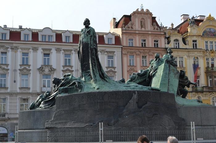 Памятник Яну Гусу. Ян Гус — национальный герой чешского народа, проповедник, идеолог чешской Реформации.