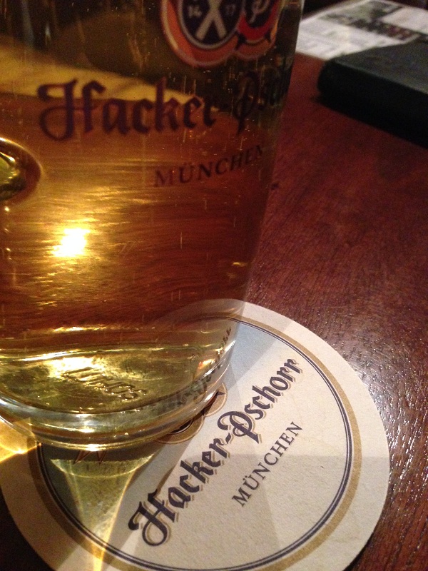 Далее решено было отпраздновать наш приезд в Баварскую столицу по кружке баварского пива в баре нашего отельчика. Мест практически не было и мы кое как приютились за барной стойкой. За две кружки пива, счет нам выставили 6 евро.