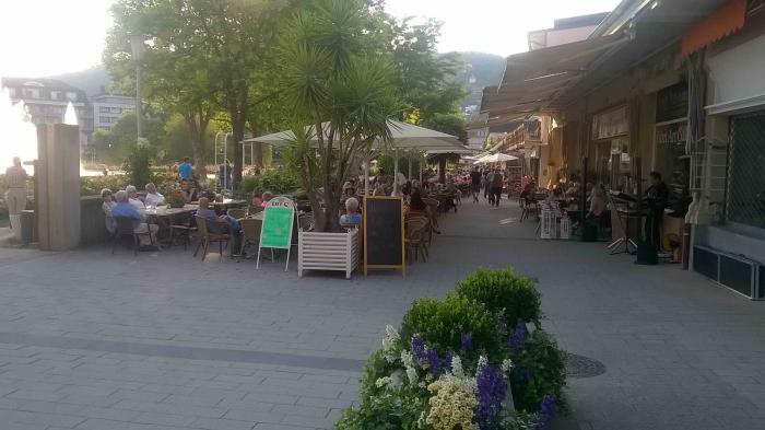 Вчера что-то всем писала и высылала, но это после 4 бокалов чудесного немецкого пива, которое столь же целебно, как местная вода. А так как воду пить невозможно, гадость хуже липецкой, поэтому выбора нет: пиво. Впрочем, тут многие отдыхающие так делают, несмотря на то, что публика о-очень пенсионерская. Везде. Гуляют с палочками и тележками, подсаживаются друг к другу за столики в кафе — те, кто не парами, общаются, заводят друзей… Даже танцы кое-где видели, прямо у кафе на улице. В общем, тот еще пионерлагерь…