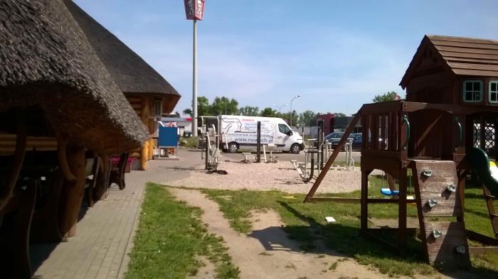 и заправочные комплексы с кафе, детскими городками и такими вот спорттренажерами для разминки водителей: