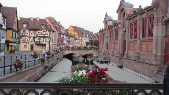 Мы встали с Дашей в 5 утра – и до 7 бродили по пустынным совершенно и почти уже чистым улочкам симпатичного городка. Нафоткались до одурения, но есть ощущение, что все фото будут похожи одно на другое..( Конечно, Кольмар не такой уж и маленький, 100 тысяч населения – думаю, что разных национальностей – рядом Германия, Швейцария, плюс мигранты из азиатских и африканских местностей.) Но сюда ездят туристы ради его средневекового центра, которые местные жители тщательно сохраняют в древнем виде. И всячески приукрашивают. С учетом местного колорита, он мне напомнил Чешски Крумлов. Хотя Крумлов, пожалуй, поприятнее по ощущениям.