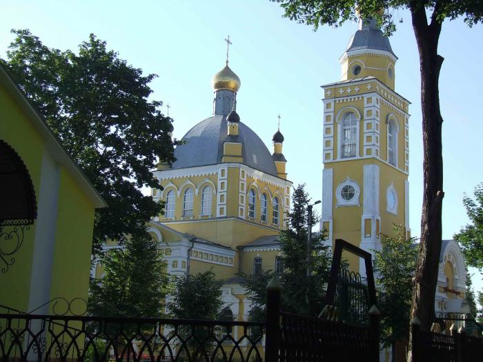 — здесь насчитывалось «10 суконных фабрик, 3 чулочных заведения, 11 кожевенных заводов, 2 чугунолитейных, 1 полотняный, 1 маслобойный, 2 мыловаренных, 3 кирпичных завода; несколько отделений различных банков, почта, телеграф, аптека и аптекарский склад, три комиссионных конторы, пять церквей: Вознесенская и Троицкая единоверческие, Петропавловская православная (архитектор К.Тонн), Покрово-Никольская и Преображенская старообрядческие, три синагоги. За городом находились два старообрядческих монастыря (Красноборский Иоанно-Предтечев монастырь, или «Полоса», и Николо-Пустынский монастырь»...
