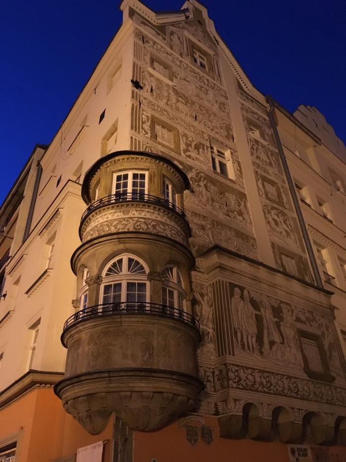 Кстати, служить охраной границы Легнице было не привыкать. В свое время эта же Легница остановила Батыя, не дала продвинуться монголам в Европу дальше, было тут несколько битв. Ну и дальше история у городка была бурная — войны, чума, пожары. В 17 веке после чумы население сократилось до 2,5 тыс человек… Сегодня --чуть более 100 тысяч… Город настолько старый, что в 12-13 веке тут уже были огромные соборы. Их тут три основных -Марии Магдалины, Иоанна Крестителя и Петра и Павла. Все три храма вчера видели, а также замок легницкий чуть посмотрели, но на моем фото это все вечером выглядит убого. В смысле, телефон и старый фотик ночную съемку плохо берут.