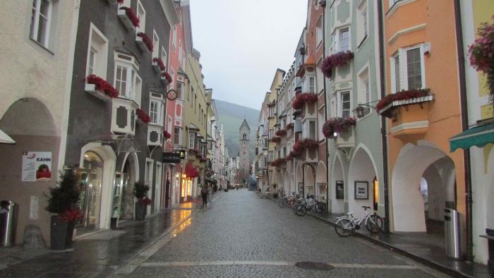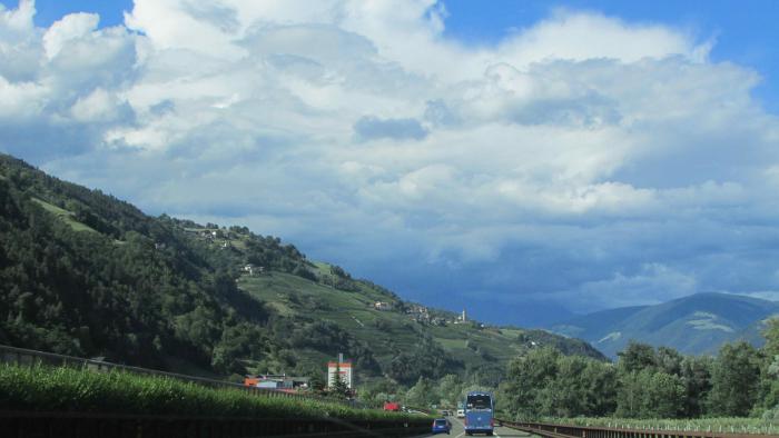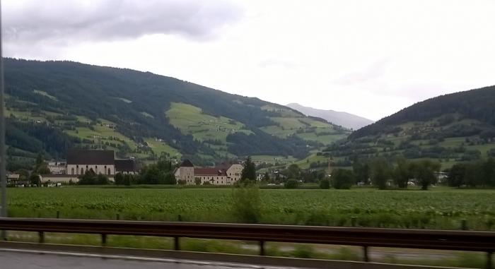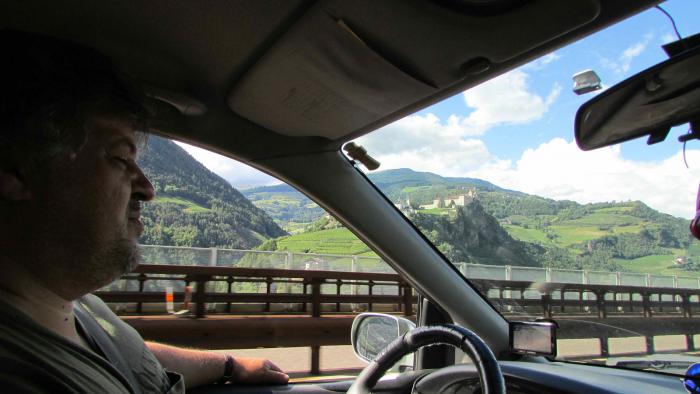 Мы сейчас в городке Vipiteno в районе Больцано в Южном Тироле. В Альпах. Проехали по красивейшим дорогам. Потрясающие виды, фото и трети впечатлений не передают. Серпантины, тоннели — 160 насчитали, мосты через пропасти. Вдалеке на горных склонах висят городки, террасы винограда, замки. Удивительные места. Не столько устали, сколько адреналину нахватались — высоко, скорости большие, хотя и ограничены до 110… и все вокруг интересно. Визг и восторг…