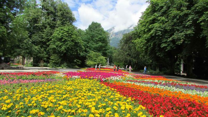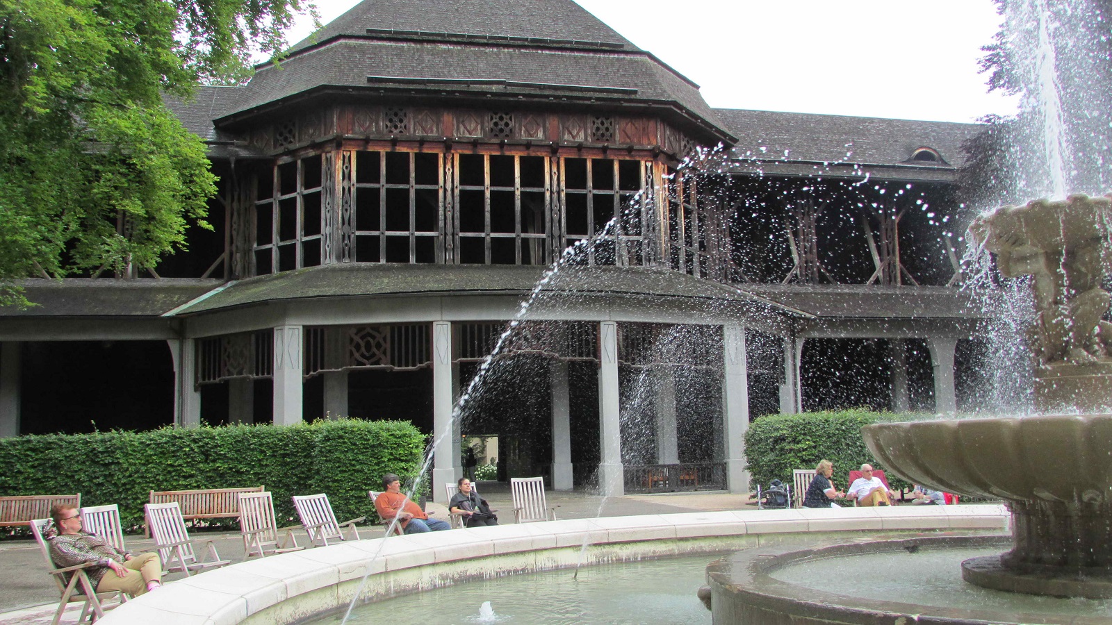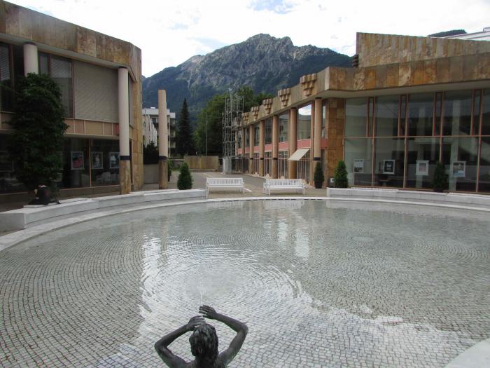 Тут в городском парке есть необычная градирня-галерея — по ней нужно гулять и дышать – ведь со стен, заполненных ветошью, струится капельками соленая вода (400 тыс тонн в сутки) и насыщает воздух рядом невероятно полезными солями. Гулять по галерее градирни нужно пару часов в день (это заменяет сутки у моря, как пишут путеводители). И еще у каждого фонтана в парке и городе стоят стулья-шезлонги, потому как фонтаны тоже соляные, бьют из земли и жутко полезные. Ну и городские скверы- парки вылизаны и ухожены, все газоны- цветники-спортивные снаряды идеальны.