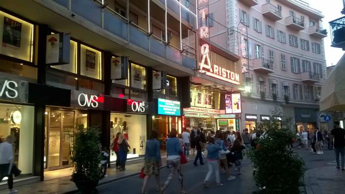 Городок маленький, холмистый, вся жизнь в районе набережной — шопинг, кафе, казино, кинотеатр Аристон, где проходят знаменитые фестивали.