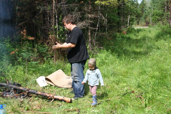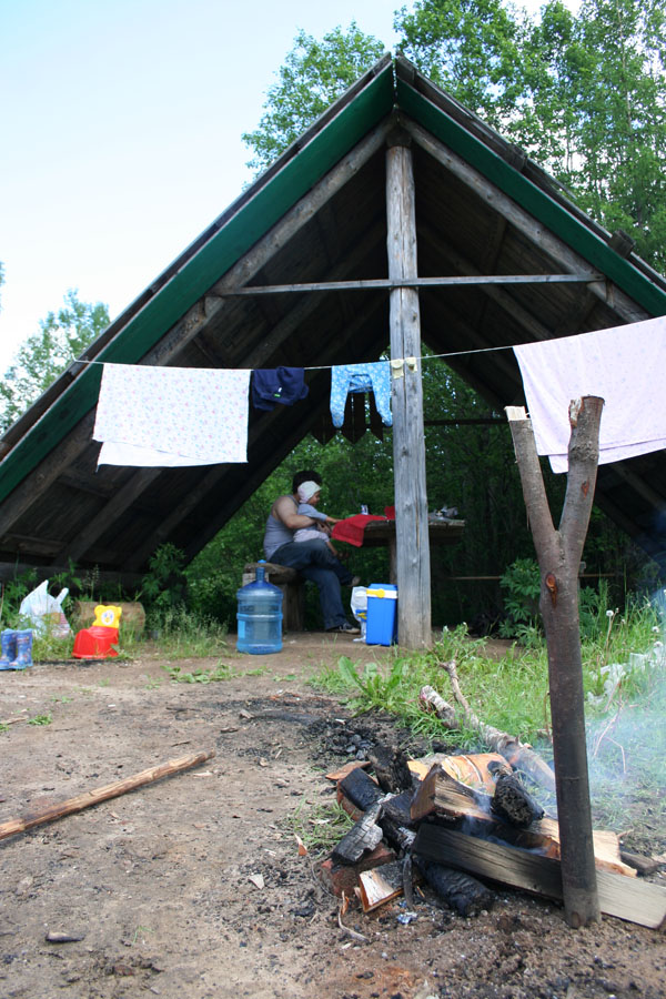 Примерно у Верхнеспасского дорога получше, но на протяжении 5-7 км. На Лукойле АИ 95-й по 27 руб. За поворотом на пос. Северный увидели заежку лесозаготовщиков (судя по дровам). Съехали с трассы. Обед и просушка белья.