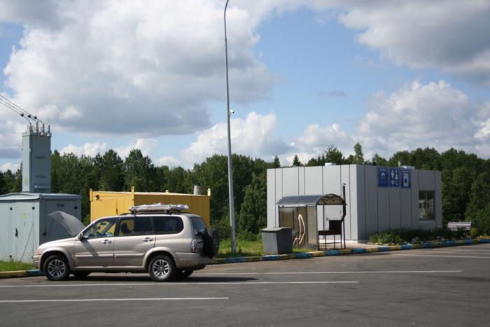 Вообще на такой дороге за сотню ехать трудно, изрядно потряхивает. Это уже конечно не мурманское шоссе. Вот, к примеру, у Колчаново на мосту через р. Сясь приличные ямы незасыпанные. Зато отсюда начинается участок хорошего асфальта, километров 5 просто пролетаешь. И опять обычная дорога с мелкими ямами, но 90-100 км/ч держать можно. Останавливаемся на стоянке для фур – большая удобная с широким комплексом услуг. Казалось, впереди их будет много, однако больше именно таких не встречали. Любуйтесь.