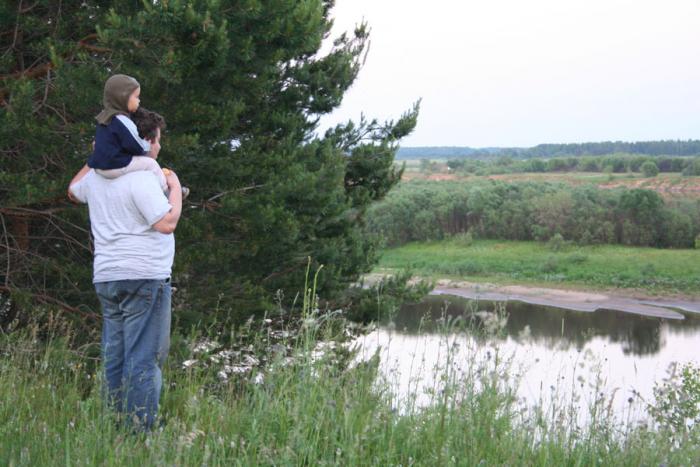 На ночь остановились на базе отдыха «Лебедь», на берегу р. Вятки, сразу за Орловом. За 1800 руб. в нашем распоряжении оказался весь первый этаж домика, с кухней и ванной комнатой. Ребенку и собачке раздолье побегать по базе и по берегу реки.