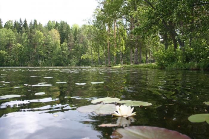 170-й километр. Хвалово. Мишка спит. Ума подуспокоилась. На выезде АЗС Роснефть — 26.70. И опять участок хорошего асфальта. Проезжаем реки Кусега, Валя. В целом дорога пока особо не беспокоит. Фур совсем немного. Награда за долгие сборы – шикарный обед у оз. Лещеево, недалеко от дер. Сомово. Совсем немного — 1,5 км съехали с трассы. Озеро с прозрачной водой, распустившиеся кувшинки, песчаный берег, сосны. Душа рукоплещет.