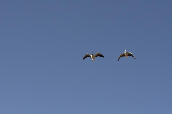 Фото 27. Утка-огарь и дикий гусь отдыхают рядышком. Чьё гнездо между ними не известно