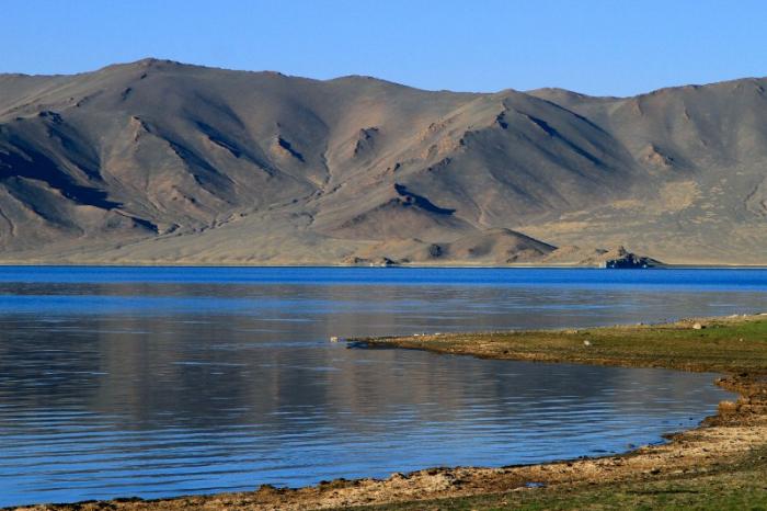 Фото 26. Озеро Толбо-Нуур окружено хребтами и скалами