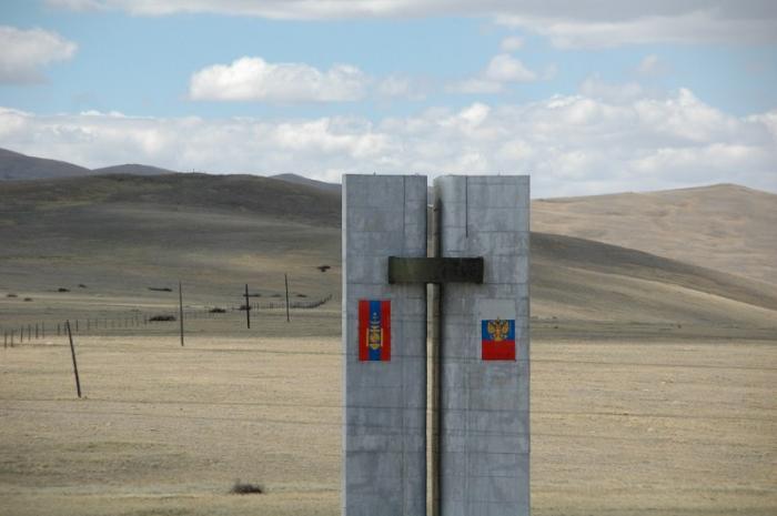Тем не менее, вязкая канитель тянется больше двух часов, после которых мы все вместе собираемся за шлагбаумом и начинаем подъём на перевал Дурбэт-Дава (2482 м), возвышающийся на нейтральной полосе. Пока ещё катим по асфальту. На вершине перевала стоит продуваемый крепкими горными ветрами передовой пост российских пограничников, стела, поясняющая, что это граница между двумя странами, да пара парадных полосатых пограничных столбов с венчающими их государственными гербами России и Монголии.