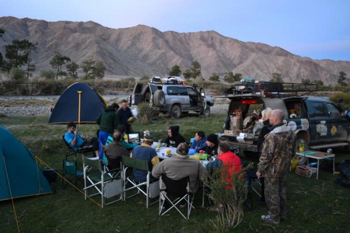Через 10-15 километров после деревни слабый на колеса «Дискавери» получил очередной пробой. Чтобы совместить ремонт колес с отдыхом остальных членов команды, решили встать на стоянку тут же, на галечном полуострове, протянувшимся метров на 500 вдоль пологого правого берега реки Булган.