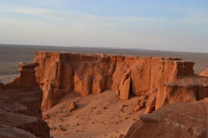Палеонтологи считают, что на месте Баянзага многие миллионы лет назад плескалось большое озеро. Наверное, так и было на самом деле, во всяком случае, стоя на краю этого плато, взгляд легко устремляется в прозрачные дальние дали, точь в точь как на морском берегу.