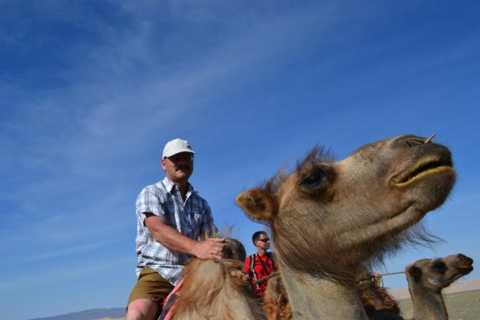 «Корабли пустыни» с облезлыми боками по причине летней линьки, размеренно покачиваясь и тяжело вздыхая, неторопливо переступают ногами. На совершенно небольшой круг ушло почти час времени. При такой медленной, монотонной скорости передвижения, естественно, что все торговые поездки через пустыню Гоби в старые времена превращались в длительные многомесячные путешествия, а караванщики волей-неволей становились мечтателями, созерцателями, философами.