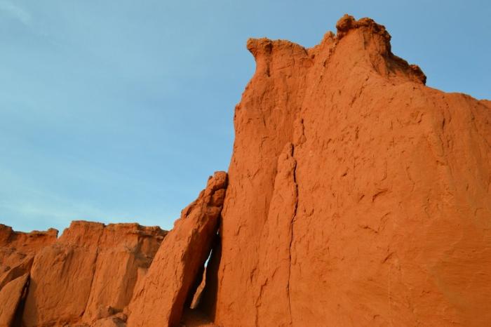 Сами же склоны ущелья играют на солнце насыщенными красно-оранжевыми тонами. Иван Ефремов в свое время назвал эти места «пылающими утесами». С авторитетным ученым не поспоришь, в лучах уходящего за горизонт светила именно так и выглядят стены каньона.