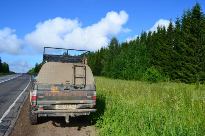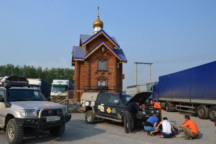 На круговой развязке перед въездом в Омск, от стоящего на обочине поста ДПС выдвинулась патрульная машина и встала в строй участников движения прямо перед нами. Получив такое неожиданное сопровождение, мы спокойно и без остановок, имея приоритет при всех пересечениях, перемахнули Омск и встали на тюменскую трассу. Спасибо неизвестному экипажу ГИБДД, решившему с одного конца города отправиться на другой к колхозному рынку! Вспомнилась эта небольшая сценка из путевой жизни лишь потому, что почти за 13 000 тысяч километров похода и почти месяц скитаний, группа в целом и экипажи в отдельности ни одного раза не были остановлены работниками дорожной полиции, как на территории России, так и в Монголии.