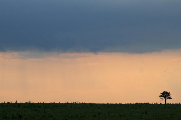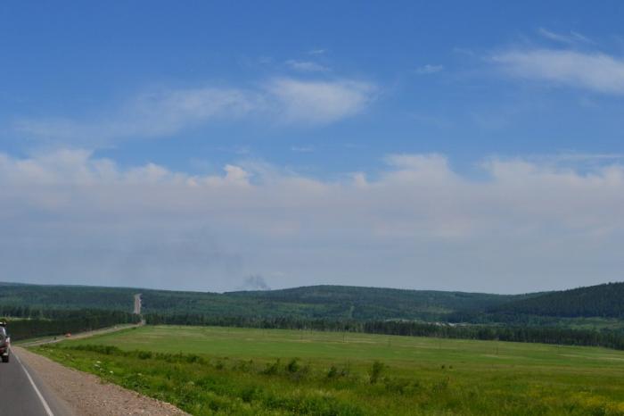 Сразу за поселком Тельма с красивым небесно-голубым храмом, где-то на просторах обширного и ровного Ленско-Ангарского плато попали под сильный проливной дождь, не прекращавшийся в течение часа.