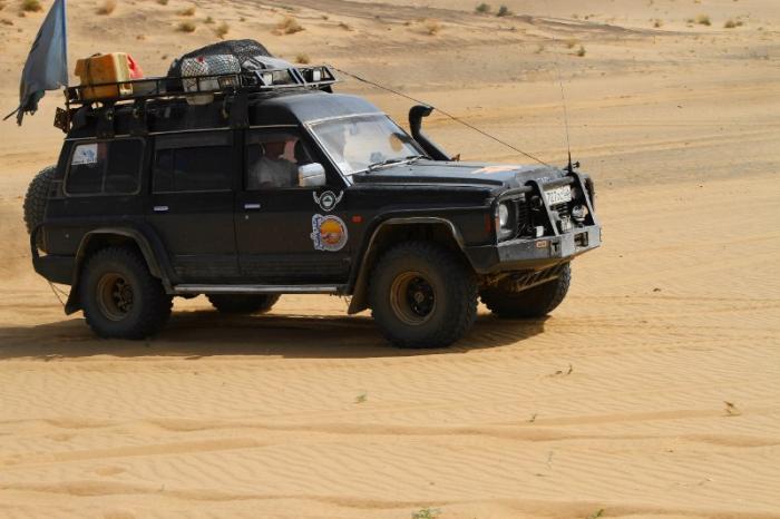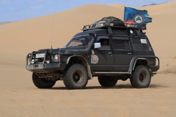 Toyota Land Cruiser 80 и Nissan Safari. Автомобили схожи конструктивно, внедорожной подготовкой и размером колес. «Большие верблюды» нашего каравана. Большинство внедорожных «прибамбасов» в этой поездке оказались не востребованными, за исключением лебедок и блокировок. Особенно невостребованным оказался силовой обвес Сафаря, изрядно утяжелявший и без того небыстрый автомобиль. Большой размер колес в 36 и 35 дюймов соответственно, так же оказался излишним в рейде по твердым поверхностям.