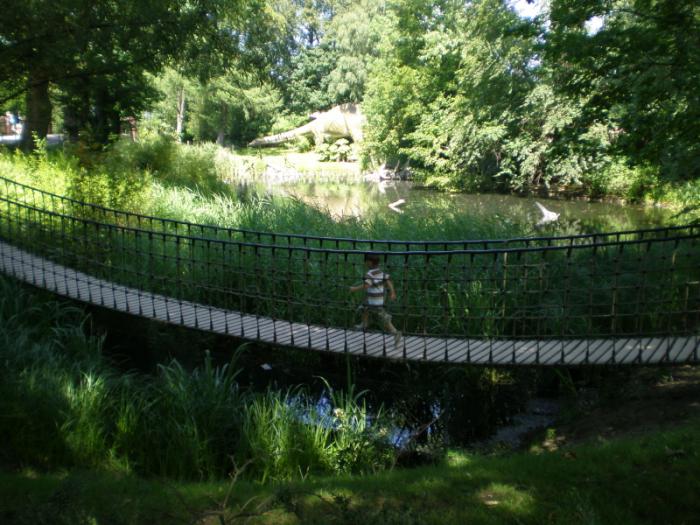 За мостом, в кустах и в воде живут динозавры.