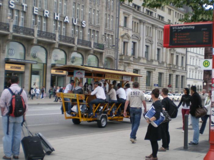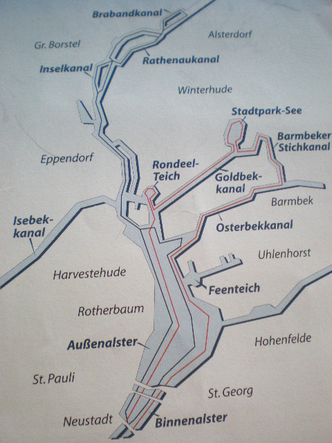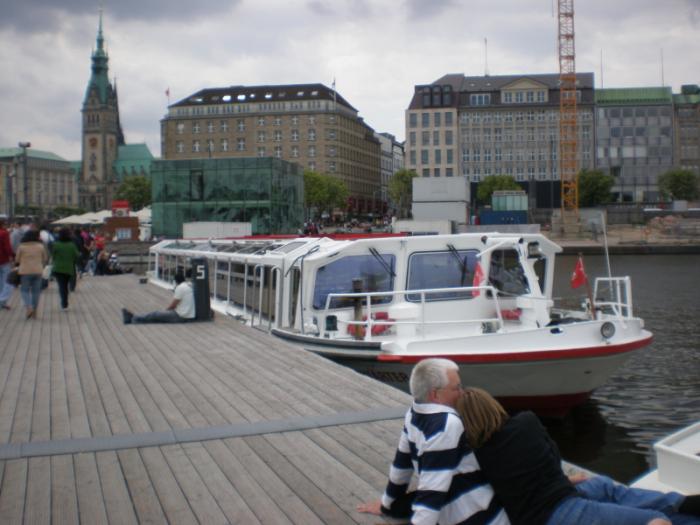 Прочитав в интернете, что посещая Гамбург нельзя не прокатиться на катере по озеру Альстер, потащила ребенка на причал. Но сплавали мы неудачно. Во-первых, попали не на тот маршрут, и вместо того, чтобы направиться в порт, 2 часа «наслаждались» видами шикарных вилл на берегу озера и задворками городских парков. Во-вторых, кораблик был забит битком, и гид всю дорогу в микрофон бубнил что-то по-немецки, но через наушники можно было послушать тот же текст на английском, французском, китайском и ещё каком-то. И ещё мы там сильно простыли. Заняли места внутри, под крышей, а когда сильно устали сидеть, вышли назад, на открытое место (там тоже народу было битком) – и моментально простыли, что омрачило нам следующие дней 10 отпуска.
