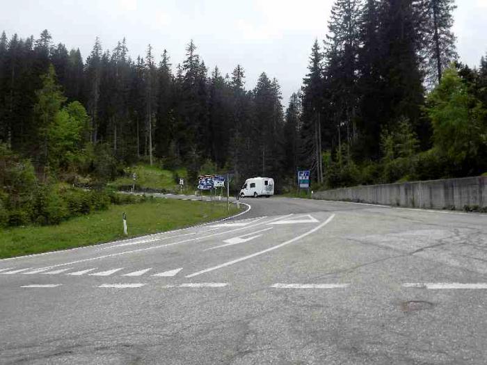 Регион Фриули-Венеция-Джулия остался позади: мы пересекли его границу с регионом Венето.И вот тут позволю себе небольшое отступление так мой отчет надеюсь будет полезен не только для автотуристов, но и для тех кто любит путешествовать по Доломитовым Альпам пешим ходом или на велосипедах.Это граница 2-х областей Италии Фриули- Венеция- Джулия и Венето.Перекресток налево наверх идет дорога на следующий перевал Sella di Razzo