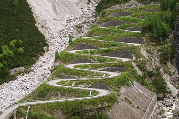 Не смотря на всю опасность, со стороны дорога выглядит очень интересно и даже красиво. Спокойно путешествуя по высокогорному серпантину Форселла Лавардет можно наслаждаться чудесными видами живописной природы Итальянских Альп.