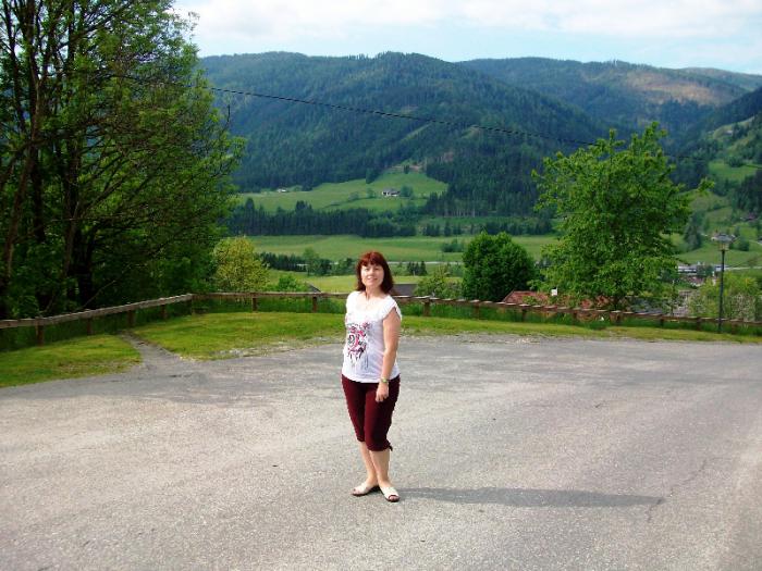 По пути увидели озеро. Называлось оно Милльштеттер Зее. Оно очень живописное и тянется на несколько километров. Было ещё утро, и озеро, покрытое туманной дымкой, казалось призрачно-голубым. Его окружали голубоватые горы, а за ними угадывались сине-белые снежные вершины других, более высоких горных хребтов.