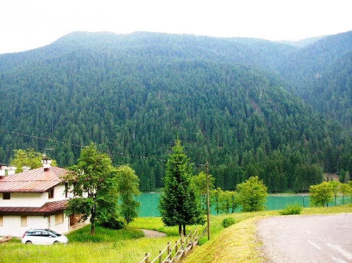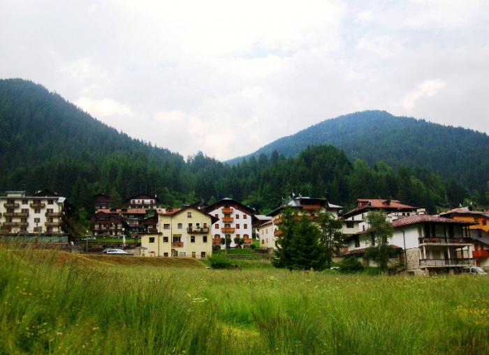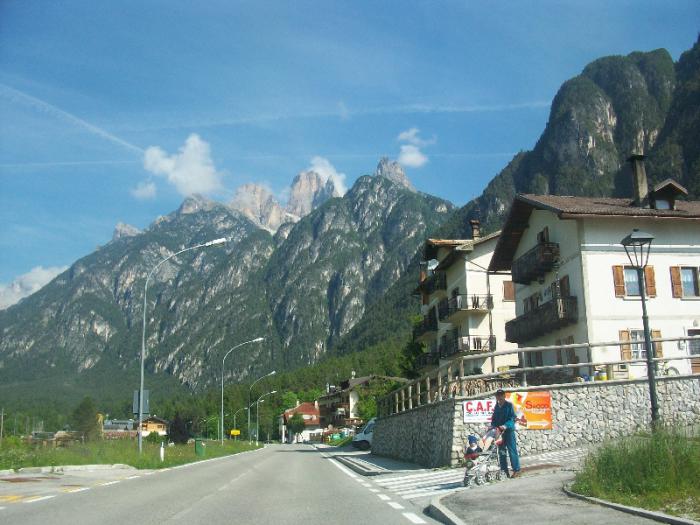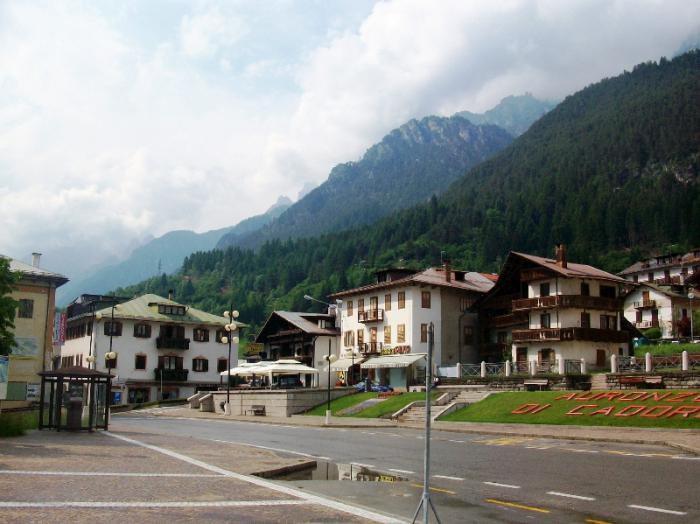 Спускались с перевала долго.Дождик наконец перестал, выглянуло солнышко.Потянулись деревушки с названием Кадоре в имени.Кадоре-историческая область в провинции Беллуно региона Венето, названная так по имени Кадорских Альп, являющихся частью Восточных Альп и долине которую условно называют Кадоре.Местность в своем роде уникальная объединяет деревни и городки в количестве 22(это коммуны, а есть еще и в составе коммун деревни с именем Кадоре).Мелькали названия Laggio di Cadore,Vigo di Cadore,Pelos di Cadore и вот наконец конечная цель нашего маршрута Auronzo di Cadore