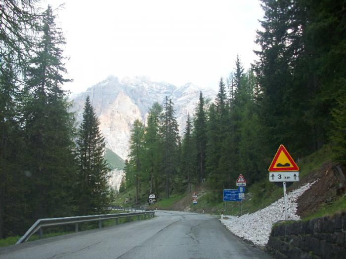 На развилке поворачиваем направо и движемся по направлению к Cortina d`Ampezzo.