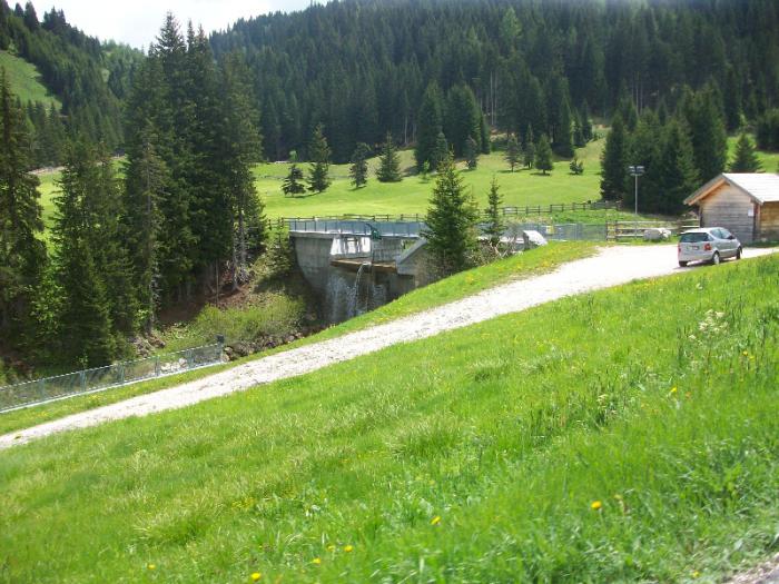 .На самом перевале даже есть участок с размытой дорогой, видимо здесь хорошо погуляла не так давно стихия.Горы могут быть коварными и злыми, особенно в непогоду и потоки из камня и грязи здесь нередкость.Спускаемся вниз к известному горнолыжному курорту Канацеи.В сентябре 2012 оттуда мы поднимались к Passo Fedaia, который находится у подножья Мармолады.На этот раз до Канацеи мы не доехали и повернули влево к Passo Pordoi.