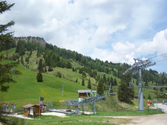 Везде мы видели множество канатных дорог.Местность эта очень популярна зимой и входит в знаменитый горнолыжный маршрут Sella Ronda.Для тех.кто помимо автотуристических маршрутов сочетает зимой и отдых на горных лыжах этот маршрут знаком, а вот тот кто впервые хочет попробовать провести зимний отпуск в Доломитах расскажу о нем поподробнее.
