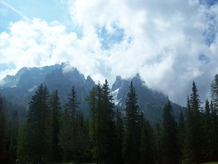 Но для начала мы проехались немного по окраинам Ауронцо Ди Кадоре за озером Santa Caterina есть дорога по горной долине val da Rin вот туда мы и решили проехаться. Мы поехали в горы.Дорога шла по лесу все время забирая вверх, причем подъем при поездке туда как то не был заметен.Зато обратно сразу было видно, что мы поднялись вверх, а теперь спускались. Проехали вглубь леса, пока не увидели знак, говоривший о том, что въезд разрешён не всем. Нарваться на лесную полицию polizia forestale и заплатить штраф не хотелось, хотя дорога вела-манила в лесные дебри. Сквозь зелёные колдовские переплетения ветвей угадывались серые скалы. Ох, как жаль, что нам туда нельзя!
