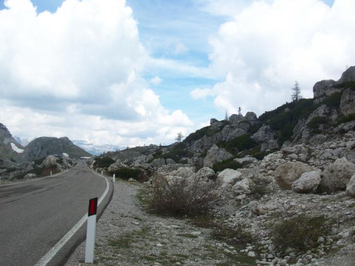 Чуть выше Passo Falzarego находится Passo Valparola (2192м). Этот перевал выглядит так: камни и скалы. Зелени почти нет. Сплошные нагромождения камней и голые скалы. Это что-то первобытное, кажется, что никакой цивилизации нет, в отличие от Falzarego, где жизнь зрима и ощутима, мир
