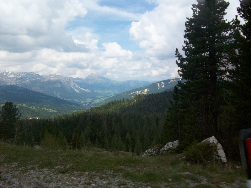 Ехали вниз с перевала Гардена. Каменные стены высились со всех сторон. В одном месте, у самых скал, увидели спасательный вертолёт, зависший вверху, на уровне середины скалы. Внизу стояли люди, кто-то снимал на сотовый телефон. Для нас так и осталось загадкой, что же там произошло. Скорее всего, проводилась спасательная операция.