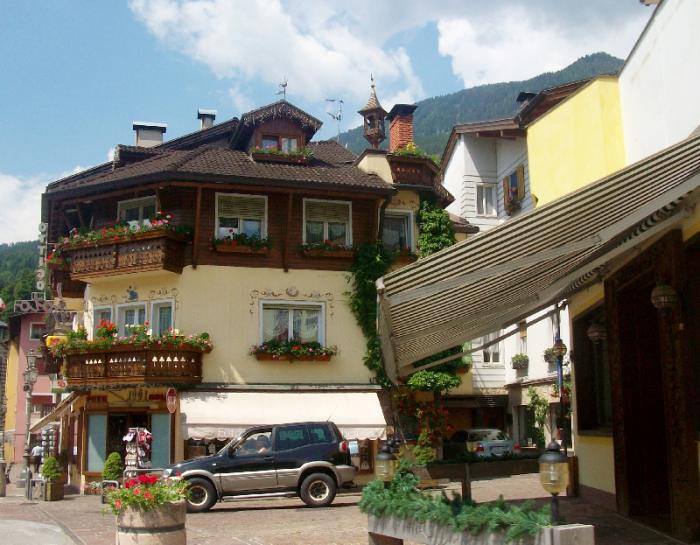 Проезжали небольшие альпийские городки региона Тренто.Например вот такой уютный городок c ярким названием Fiera di Premiera.В городке много красивых домов.