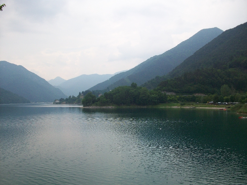 Lago di Idro находится уже в регионе Ломбардия.Озеро Идро расположено в провинции Брешиа в итальянской области Ломбардия и на местном диалекте называется Эридио. Оно имеет ледниковое происхождение и лежит на высоте 368-ми метров над уровнем моря – это самое высокое предальпийское озеро Италии. Это пресное озеро образуется рекой Кьезе, которая из него же и вытекает.Идро – довольно большое озеро, площадь его поверхности равна 11,4 кв.км., а максимальная глубина составляет 122 метра! Когда-то оно вызывало серьезную обеспокоенность ученых, поскольку его воды интенсивно использовались для орошения, а из-за отсутствия стока заболачивались. В 1920-х годах здесь была построена плотина, которая сделала Идро первым в Италии природным озером с регулируемым стоком. Вплоть до 1987-го года эта плотина управлялась специально созданной компанией, однако вот уже больше 20 лет не утихают споры между общинами местных жителей, административными органами и корпорацией «L’ENEL», которая использует воды Идро для работы гидроэлектростанции. В настоящее время реализуется ряд мер по введению лимитов на понижение уровня озера – все это делается для оздоровления Идро и очищения вод.Чтобы увидеть Lago di Idro во всей его озёрной красоте, надо было подняться вверх по серпантину. Оно лежало внизу и притягательно голубело.