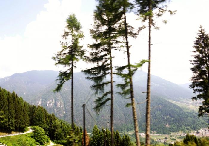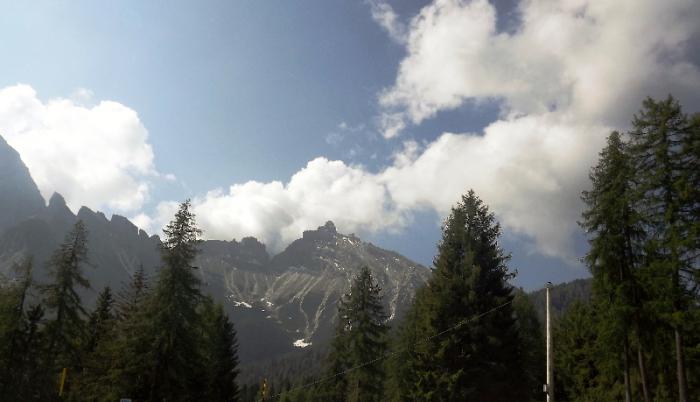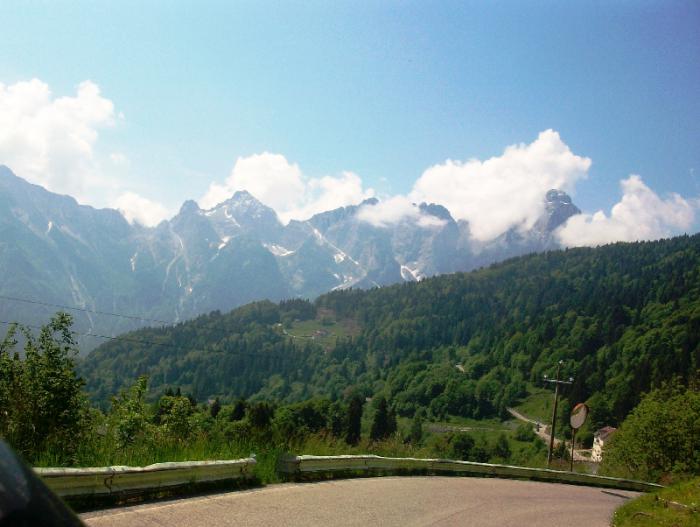 Хотелось конечно, чтобы Civetta высотой 3220 м над уровнем моря попала в кадр фотоаппарата, но запечатлелась она у нас только на видеорегистраторе.И то хорошо.С поездки, тем более по таким местам я всегда стараюсь оставлять записи на видеорегистраторе, чтобы можно хотя бы в домашней обстановке снова вернуться к этим замечательным минутам поездки.В Agordo мы поворачиваем на еще один перевал Passo Cereda.Доломиты заканчиваются, горы становятся пониже.Пересекаем Forcella Aurine-1297м, снова спускаемся вниз к городку Gosaldo